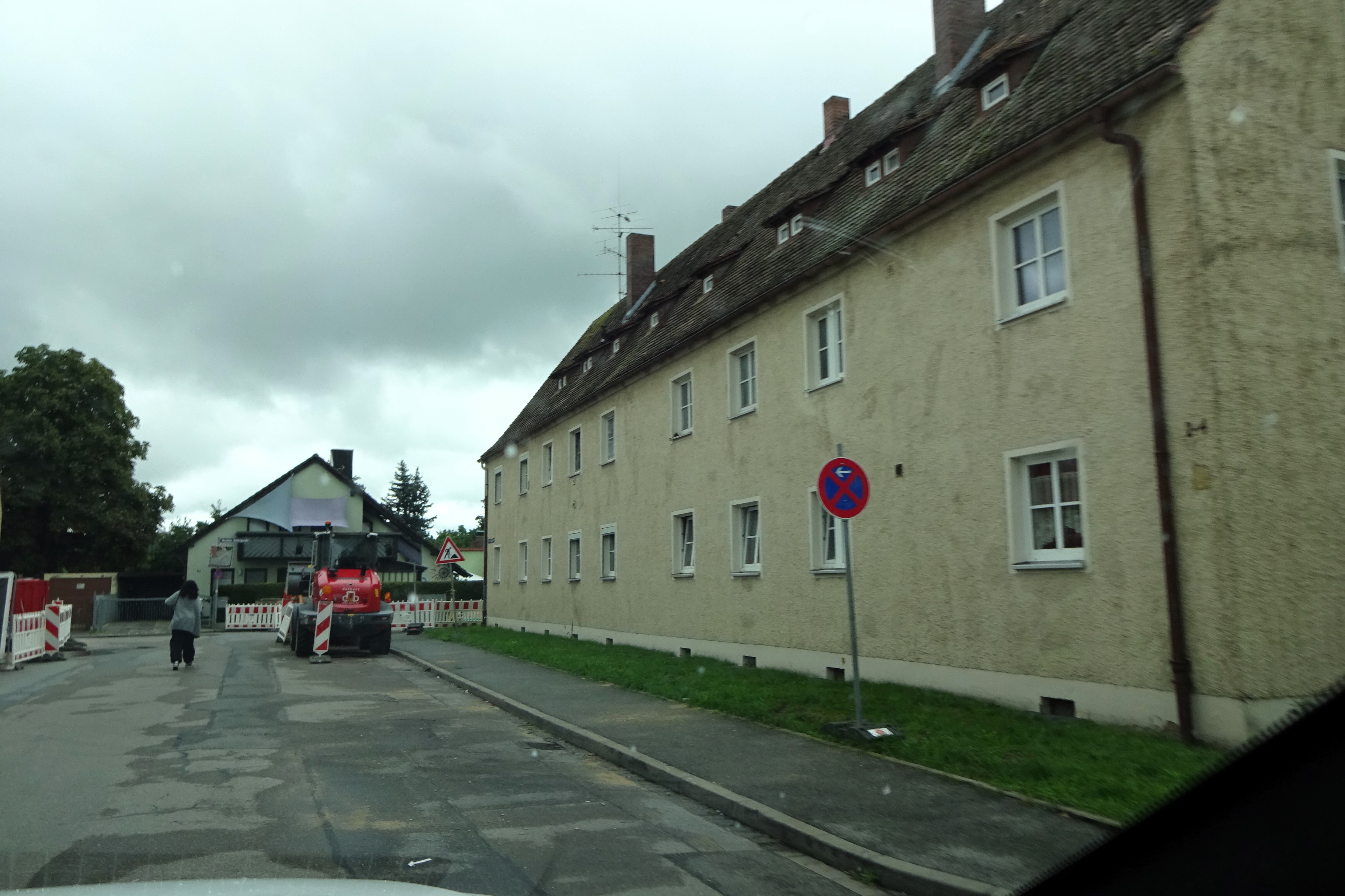 Straße An der Waldschänke mit in den 1950iger Jahren gebauten Wohnblock Haus Nummer 2 und 4 (Abriß 2025), der ehem. Gewo Stadeln, 2023