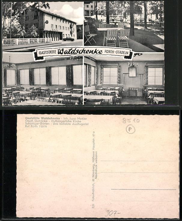 | Dateiinfo (Bild-Unterschrift und Info-Box, automatisch erstellt) | Zeitgenössische Ansichtskarte Waldschänke Stadeln Urheber: Foto-Fröhlich<br>Lizenz: CC BY-SA 3.0 | ||