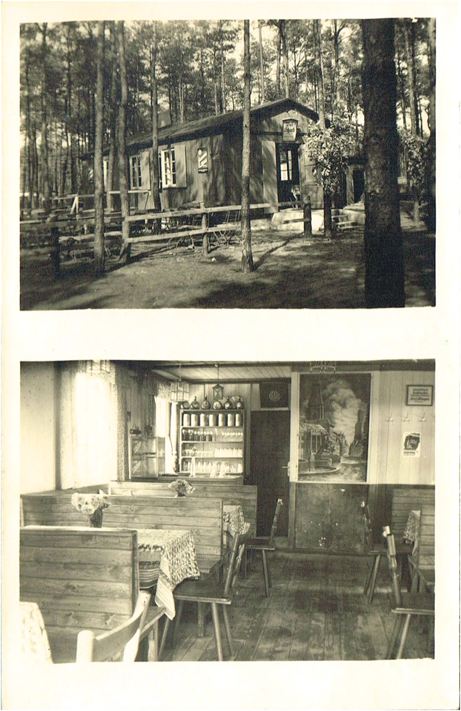 | Beschreibung | Die alte Waldschänke – Außen- und Innenansicht der Wirtschaftsbaracke | ||