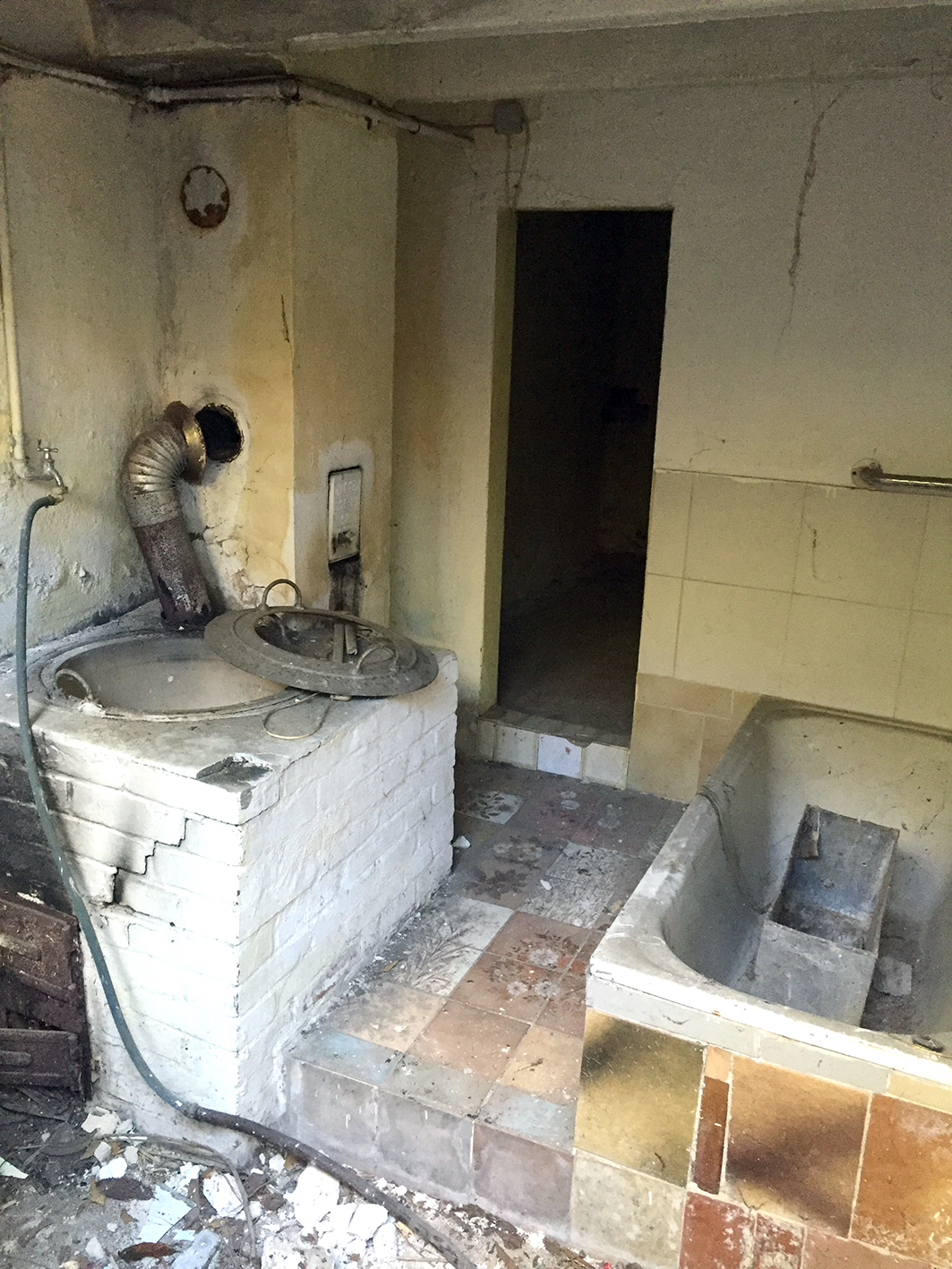 | Beschreibung | Ehem. Wohnhäuser in der Wehlauer Straße 33/ 35 kurz vor dem Abriss, Waschküche im UG, 2016 | ||