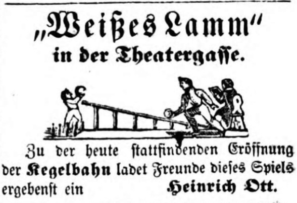 | Beschreibung | Zeitungsannonce "weißes Lamm", April 1857 | ||