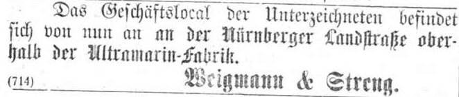 | Beschreibung | Zeitungsanzeige von "Weigmann & Streng", Februar 1866 | ||