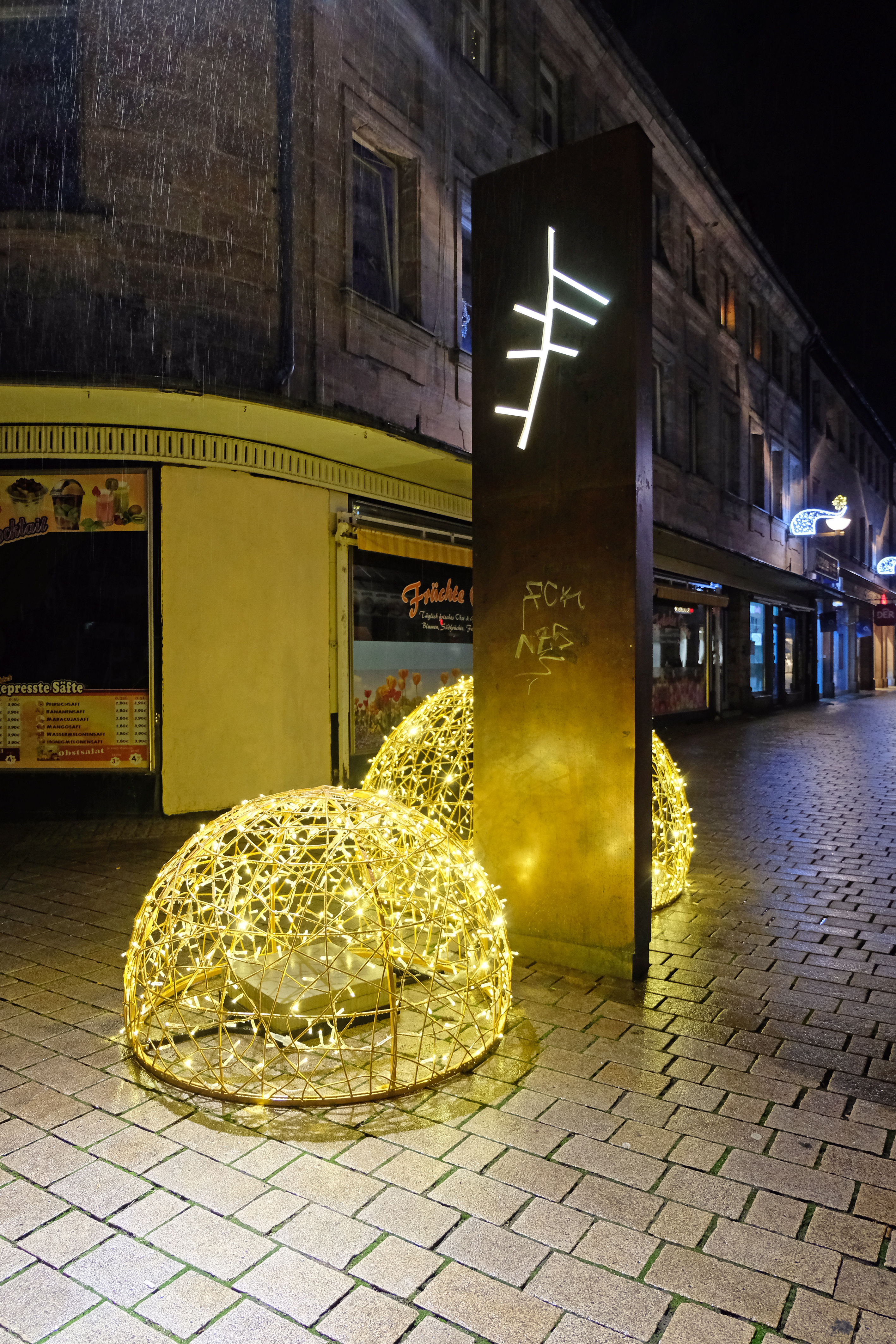 | Beschreibung | Die neu angeschaffte Weihnachtsbeleuchtung für die Fußgängerzone, 2018 | ||