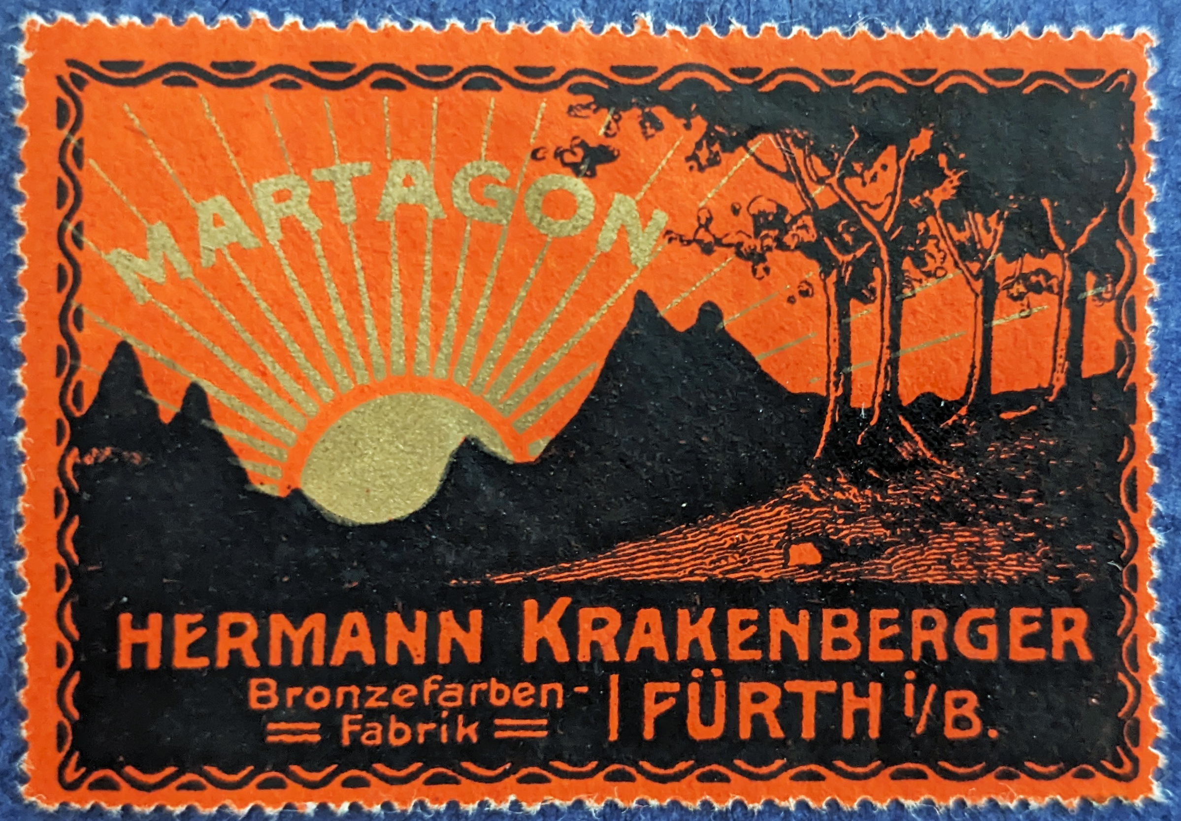 | Beschreibung | Historische Reklamemarke der Bronzefarben-Fabrik Hermann Krakenberger, ca. 1913 | ||