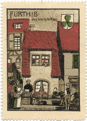 | Beschreibung | Reklamemarke Fürth "das kleinste Haus" | ||