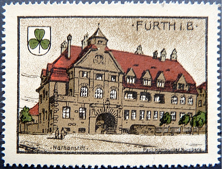 | Dateiinfo (Bild-Unterschrift und Info-Box, automatisch erstellt) | Historische Werbemarke Nathanstift Urheber: Paul Hamburger | ||