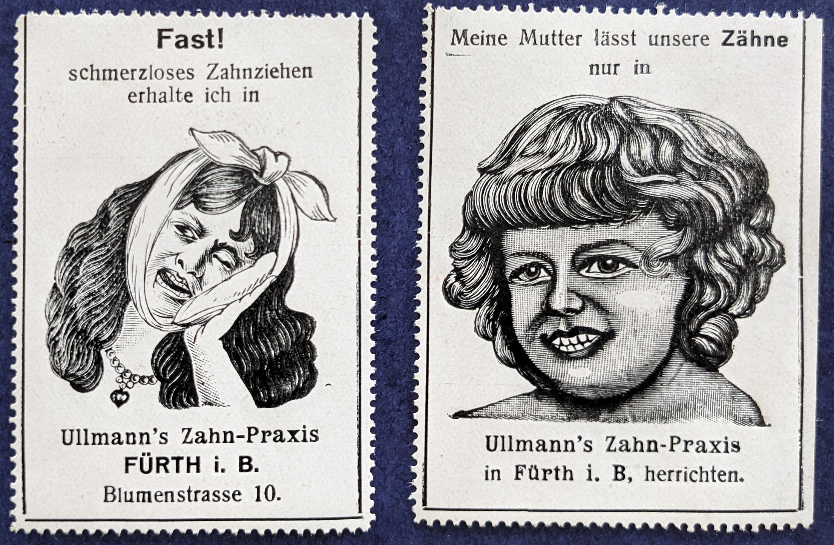 | Beschreibung | Historische Reklamemarke von Ullmann's Zahnpraxis, ca. 1913 | ||