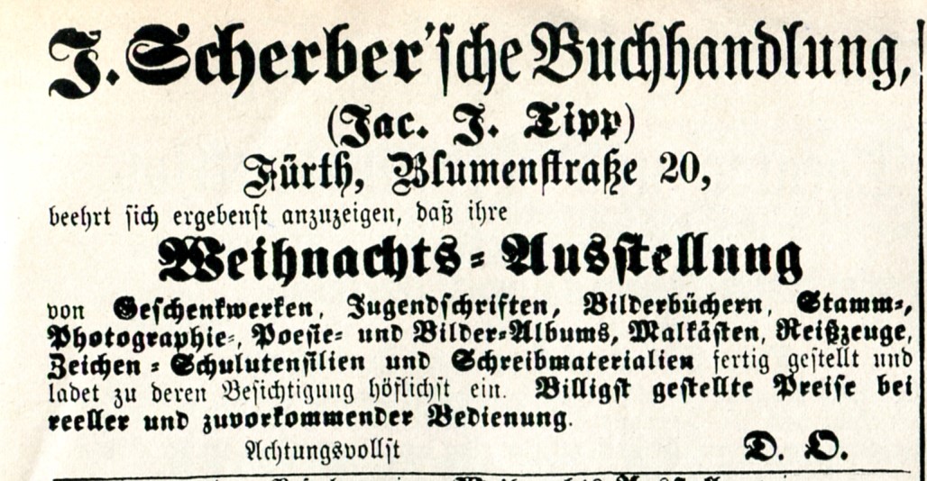 | Beschreibung | Werbung im Fürther Tagblatt vom 7. Dezember 1884 | ||