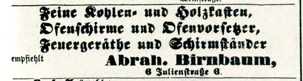 | Datei:Werbung 1884 Julienstraße 6.jpg | |||