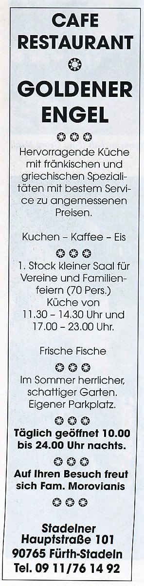 Werbung der Gaststätte Goldener Engel (Stadeln) 1996