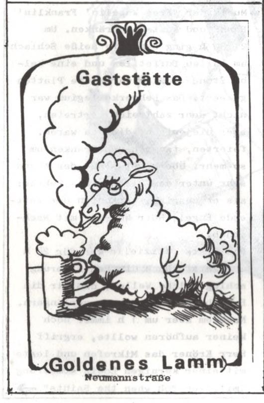 | Beschreibung | Werbung vom Gasthaus Zum goldnen Lamm Neumannstraße 15 in der Schülerzeitung Die Pennalen Nr. 4 1977 | ||