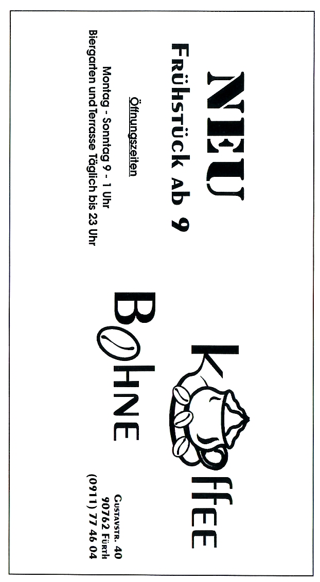 | Beschreibung | Werbung Gaststätte Kaffeebohne 1995 | ||