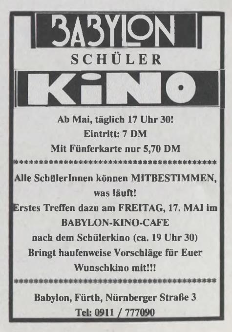 | Beschreibung | Werbung Kino Babylon in der Schülerzeitung Die Pennalen Nr. 2 1991 | ||