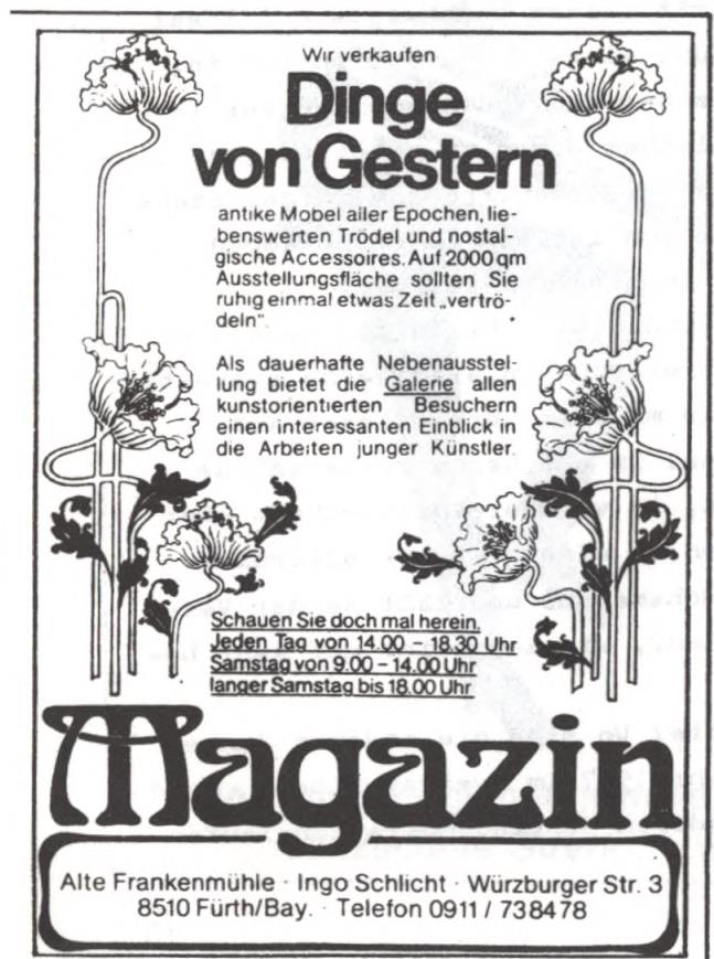 | Beschreibung | Werbung "Magazin" Alte Frankenmühle Ingo Schlicht in der Schülerzeitung Die Pennalen Nr. 1 1979 | ||