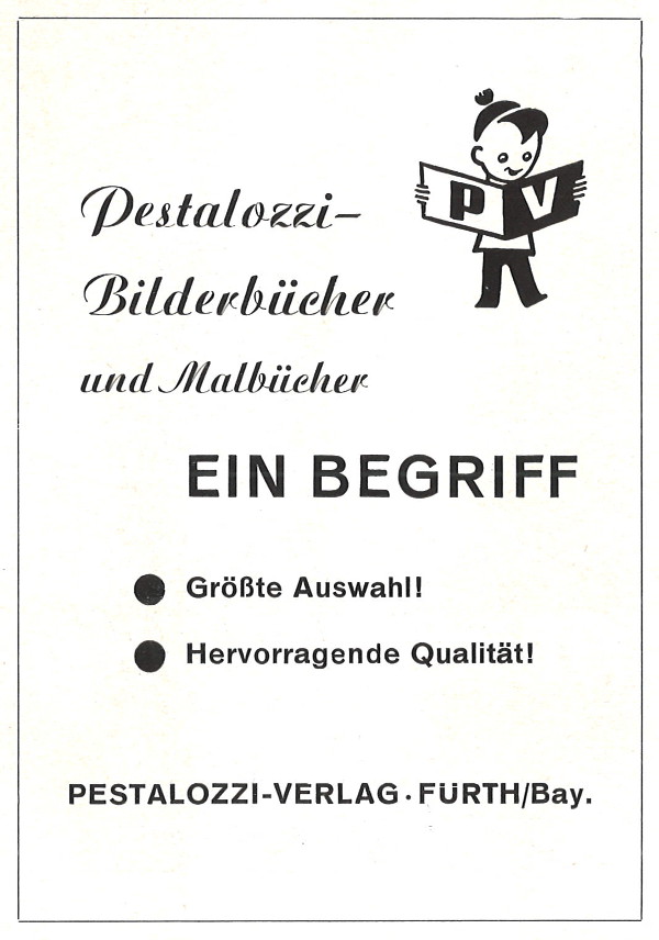 | Beschreibung | Werbeanzeige des Pestalozzi Verlags von 1962 | ||