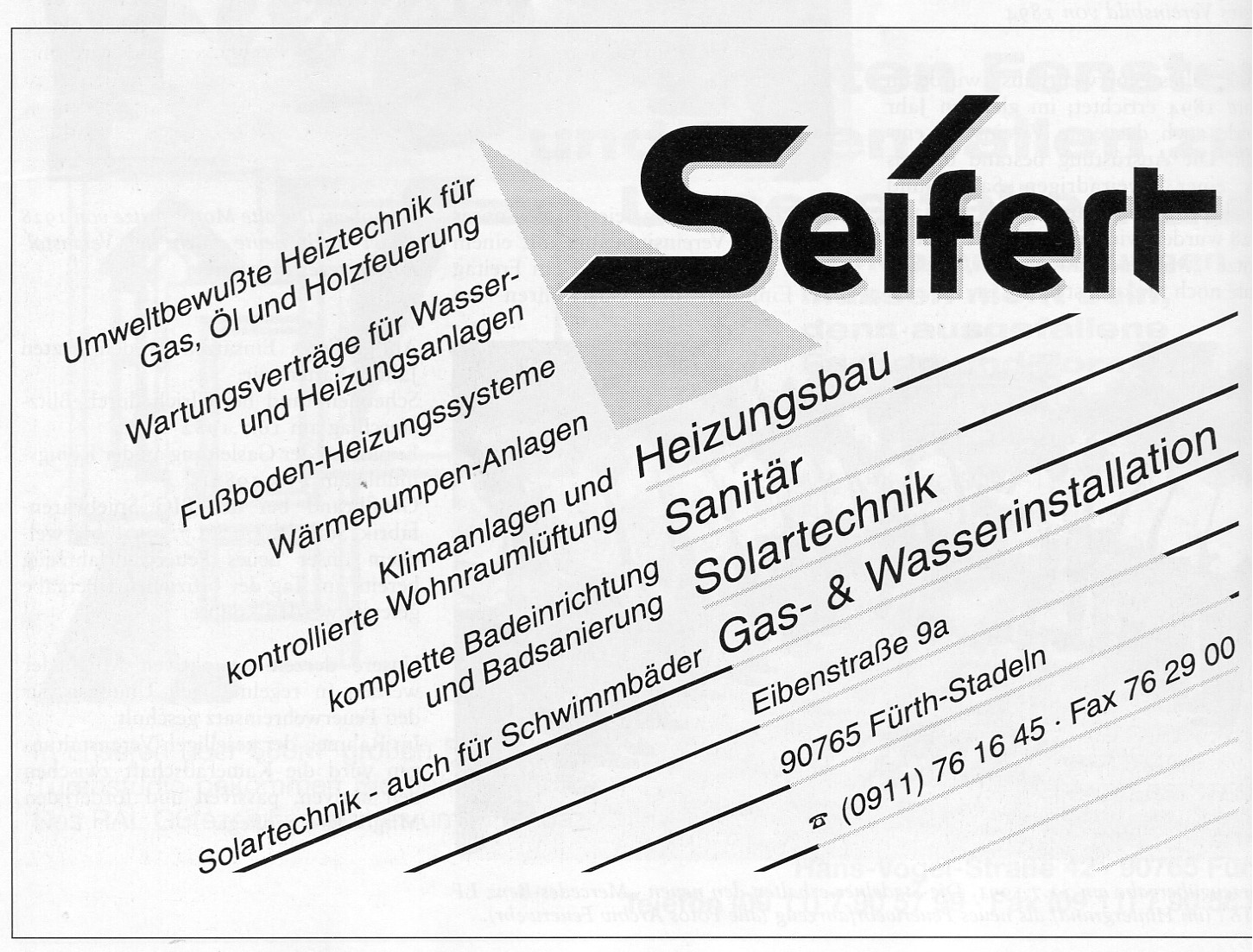 | Beschreibung | Werbung Heizungsbau Seifert Stadeln 1996 | ||