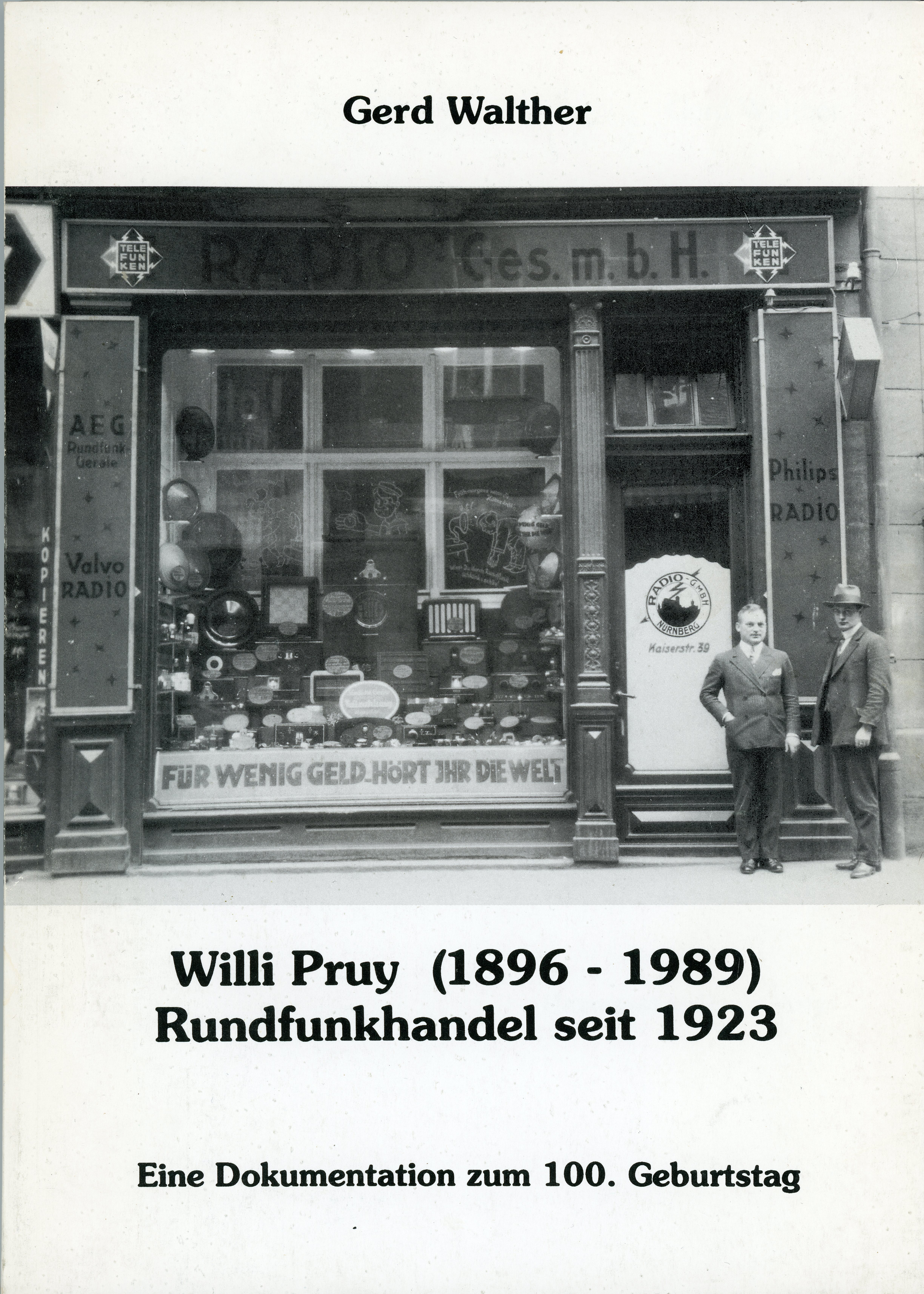 | Dateiinfo (Bild-Unterschrift und Info-Box, automatisch erstellt) | Titelseite: Willi Pruy (1896 - 1989) - Rundfunkhandel seit 1923, 1996 Urheber: Gerd Walther<br><br>Lizenz: copyright | ||