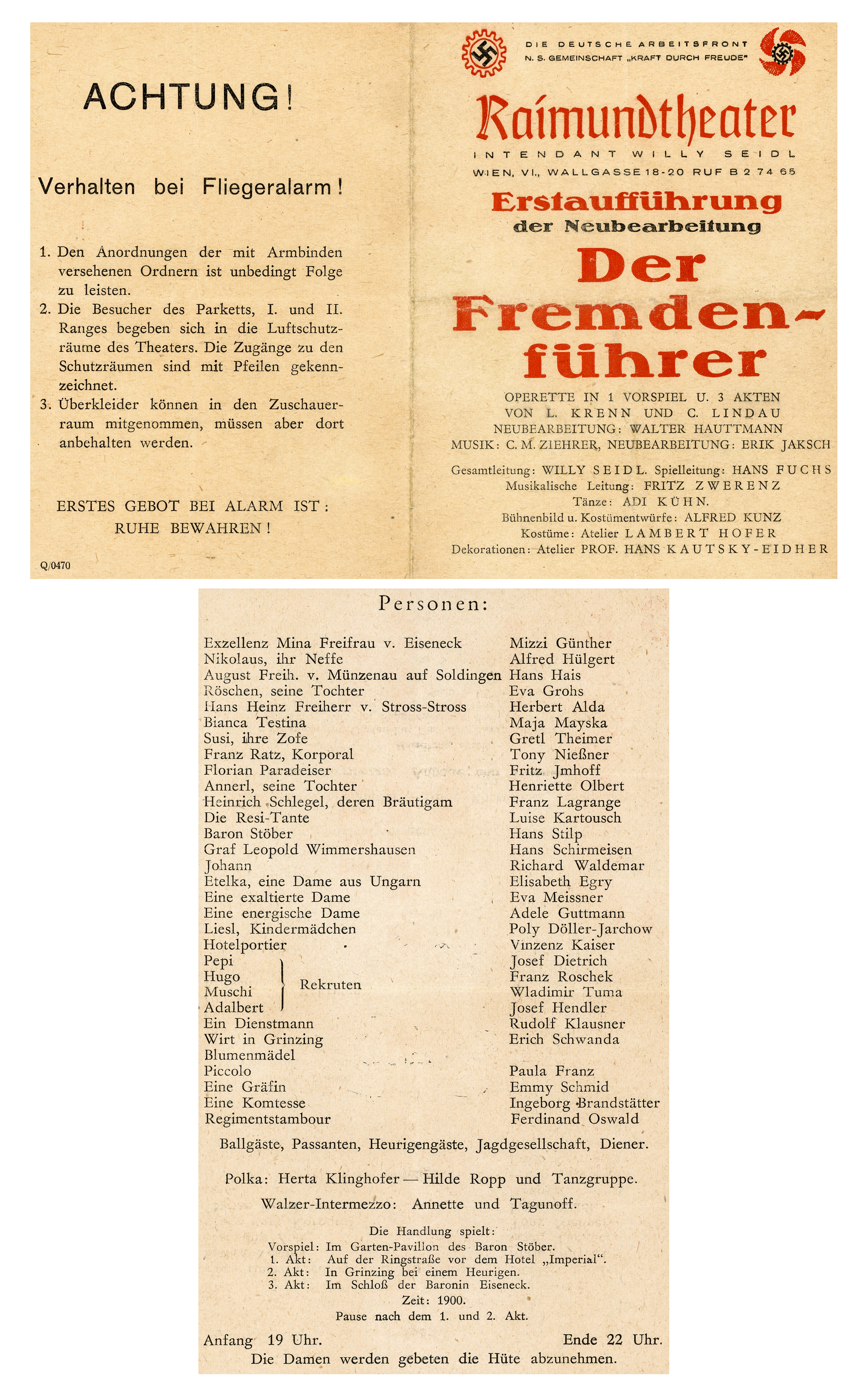 | Beschreibung | Werbeblatt für eine Theater-Aufführung im Wiener Raimundtheater mit dem ehem. Intendanten aus dem Stadttheater Fürth Willy Seidl, 1942 | ||