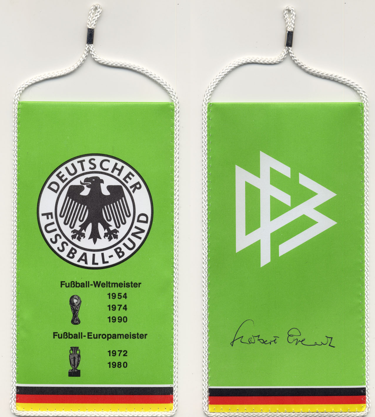 | Dateiinfo (Bild-Unterschrift und Info-Box, automatisch erstellt) | DFB Wimpel mit Unterschrift von Herbert Erhard Lizenz: CC BY-SA 3.0 | ||