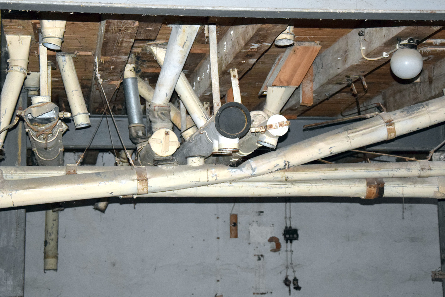 | Beschreibung | Wolfsgrubermühle - Rohrverbindungen in der Zwischendecke, 2015 | ||