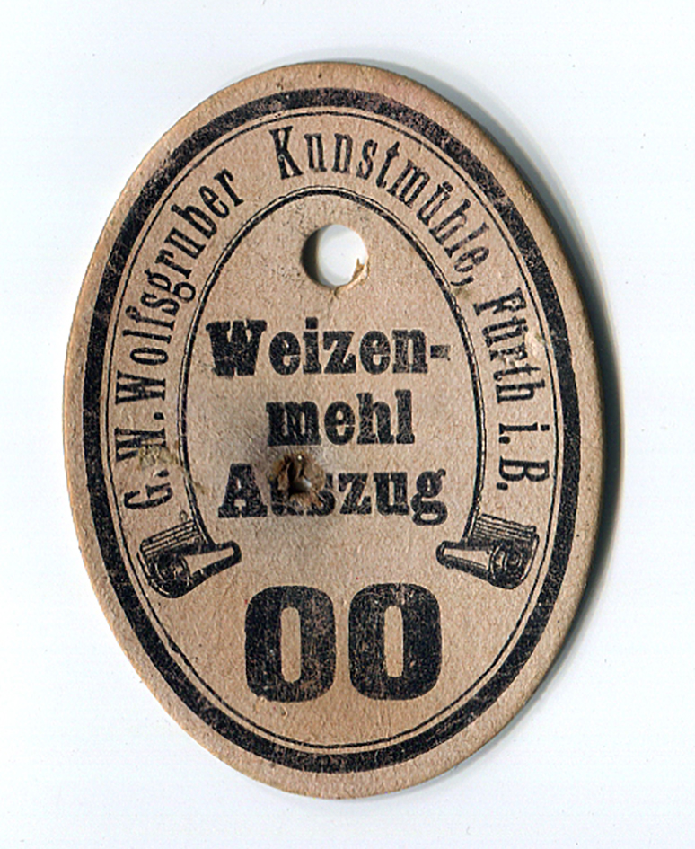 | Dateiinfo (Bild-Unterschrift und Info-Box, automatisch erstellt) | Etikett für Mehlsäcke, Weizenmehl Typ 405 - ehemals "Weizenmehl Auszug 00", um 1950. Urheber: Wolfsgrubermühle<br><br>Lizenz: CC BY-SA 3.0 | ||