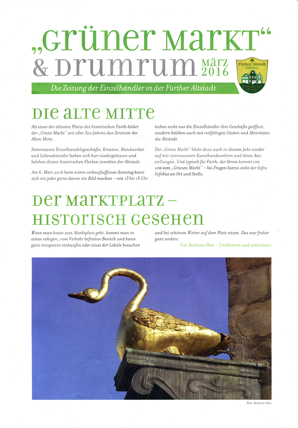 | Dateiinfo (Bild-Unterschrift und Info-Box, automatisch erstellt) | 1. Ausgabe "Grüner Markt & Drumrum", März 2016 der Einzelhändler der Fürther Altstadt Urheber: Einzelhändler der Fürther Altstadt<br><br>Lizenz: Copyright | ||