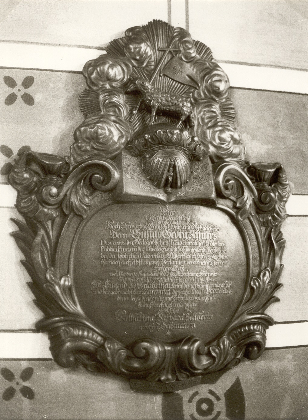 | Beschreibung | Epitaph von Gustav Georg Zeltner, nahe der Wand am Taufstein in der Poppenreuther Kirche | ||