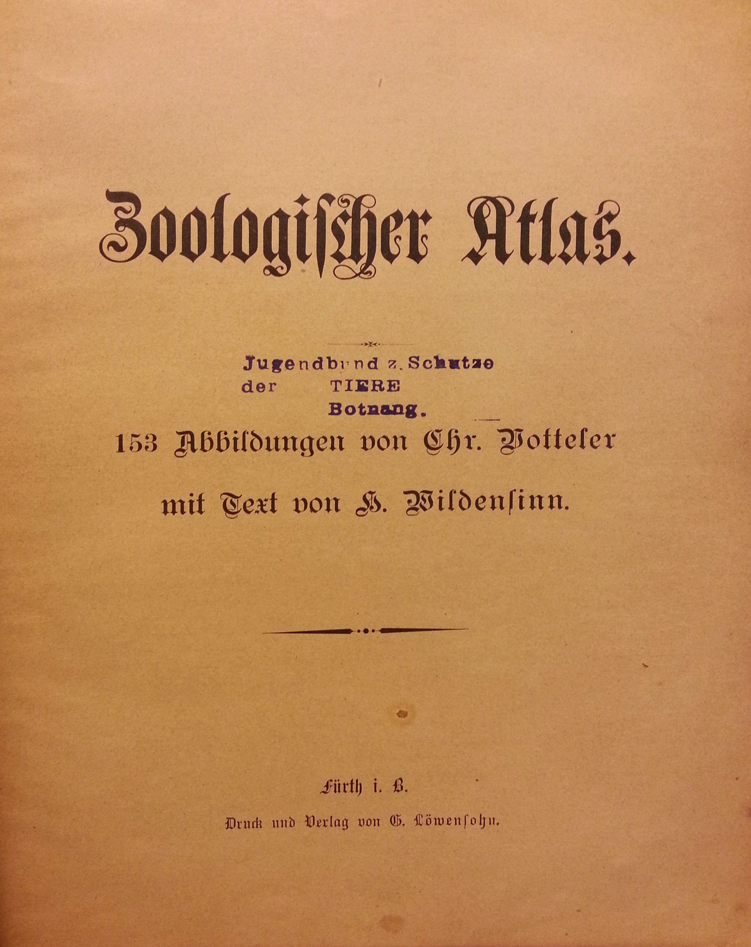| Beschreibung | Zoologischer Bilderatlas mit Texten von Hans Wildensinn. Bilderbücherfabrik Löwensohn, um 1910 | ||