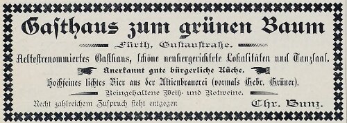 | Dateiinfo (Bild-Unterschrift und Info-Box, automatisch erstellt) | Werbeannonce "zum grünen Baum", Juli 1898 Lizenz: NoC-NC 1.0 | ||