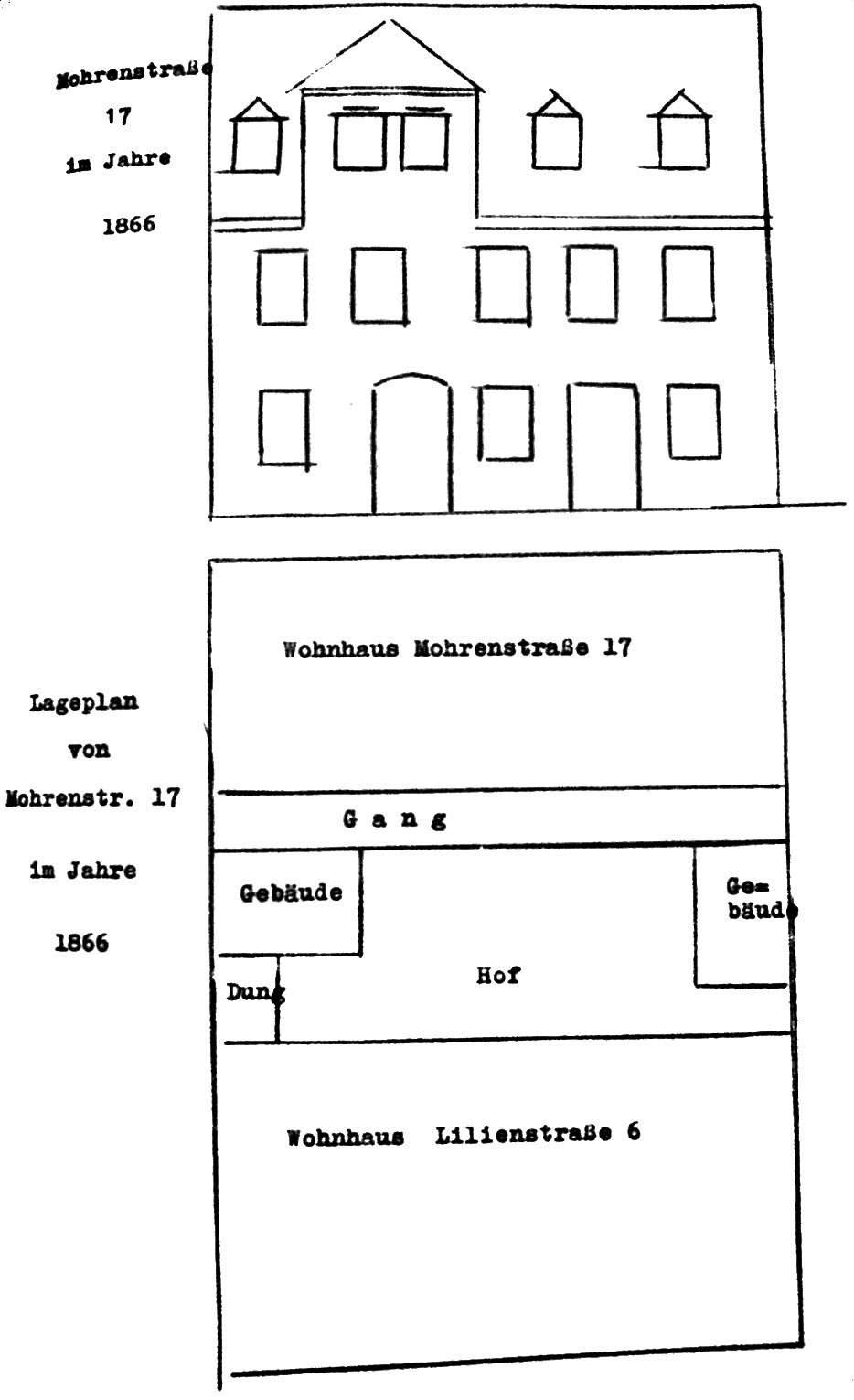 | Beschreibung | Zustand Mohrenstraße 17 im Jahr 1866 | ||