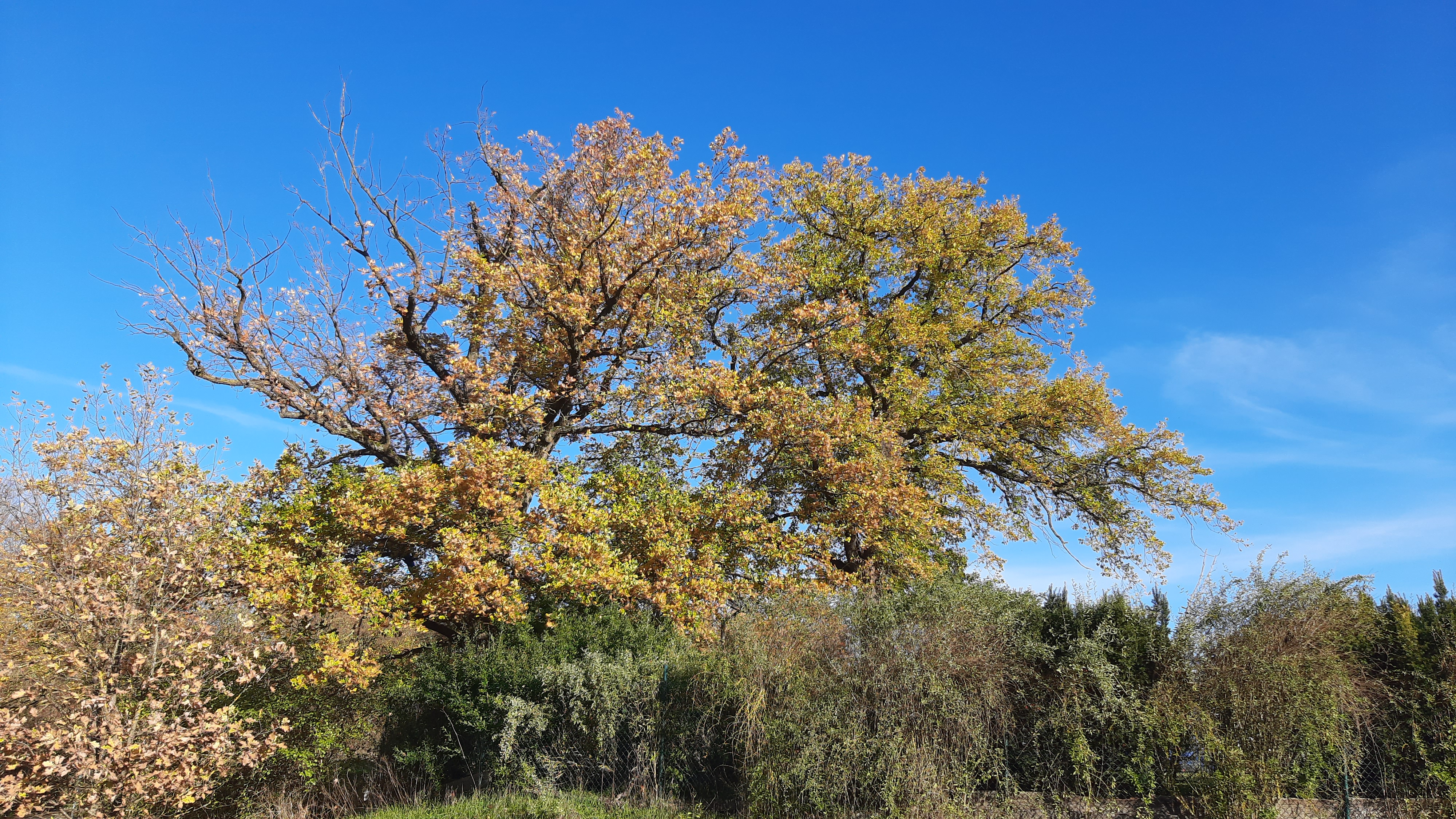 | Beschreibung | Naturdenkmal "Zwei Eichen in Weikershof" im November 2022 | ||