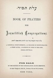 - 1855 wurde er Rabbiner der Har-Sinai Gemeinde in Baltimore. Dort schrieb er ein Gebetbuch (עלת תמיד - Olat Tamid), das Samuel Hirsch in seinem Nekrolog auf David Einhorn zu dessen Hauptwerken zählte.[9] Dieses neue jüdisch reformierte Gebetbuch war größtenteils in deutscher Sprache, verkürzte den traditionellen Gottesdienst, brachte die Universalität der Menschheit zum Ausdruck, schwächte Israel als auserwähltes Volk ab und entfernte alle Hinweise auf einen persönlichen Messias, die Rückkehr nach Israel oder gar die Wiederaufnahme des Opferkultes.[6]