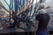 Lizenz: CC BY-SA 3.0Besucherin vor dem Aquarium im Flair - noch mit den Rochen im Becken, Sept. 2021 Urheber: Kamran Salimi