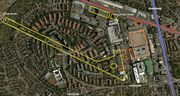 Lage des Industrieflughafens Fürth, 1945 auf der heutigen Hardhöhe (Startbahn 1660 x 50 m 12/30 - ... Lage des Industrieflughafens Fürth, 1945 auf der heutigen Hardhöhe (Startbahn 1660 x 50 m 12/30 - grün das noch existierende ehem. Elbag-Lager, heute Möbel Flamme)