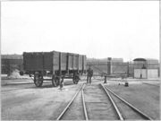 Lizenz: Bildlizenz-StadtarchivGaswerk, Rangierwindenanlage mit eigenem Güterwagen, Tor zur damaligen Richard-Wagner-Straße, im ... Gaswerk, Rangierwindenanlage mit eigenem Güterwagen, Tor zur damaligen Richard-Wagner-Straße, im Hintergrund Häuser an der Nürnberger Straße, Aufnahme von 1911
