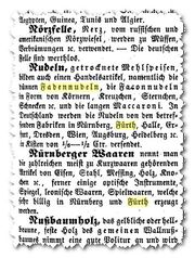 Wiederholt wird diese Aussage in Schedels "Waaren-Lexikon" von 1801, im "Waaren-Lexikon" von 1814 und im "Waaren-Lexikon" von 1835 - hier ist jeweils zu lesen, dass Fürth die "wohlfeilsten" Maccaroni liefert.[18][19][20]