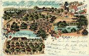Lizenz: CC BY-SA 3.0Blick von Erlanger Str. 31 (Rückseite) über die Wolfringstr. und das Gelände des Praters mit ... Blick von Erlanger Str. 31 (Rückseite) über die Wolfringstr. und das Gelände des Praters mit Trinkhallen und Pavillon - im Hintergrund wieder Häuser der Erlanger Str. und der Schlot der alten Evora-Brauerei