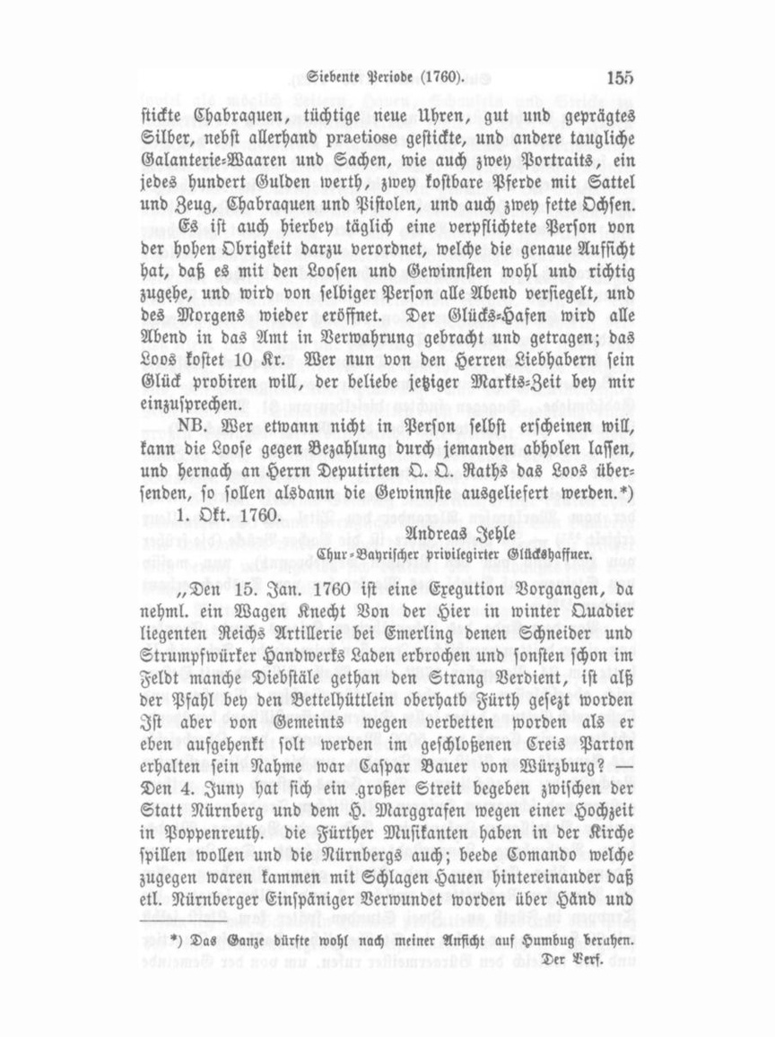 1. Okt. 1760. Andreas Jehle Lhur-Bayrischer privilegirter Glückshaffner.