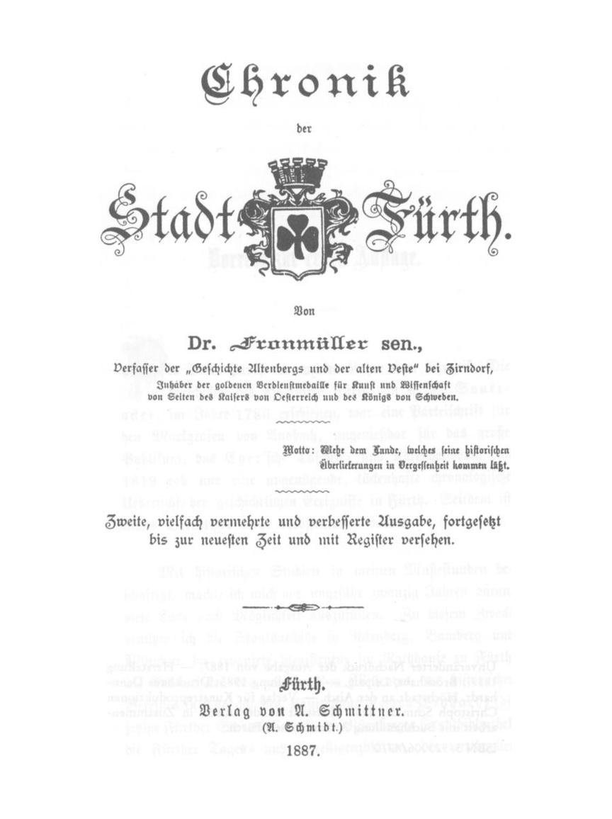 Unveränderter Nachdruck der Ausgabe von 1887. — Herstellung 1887.: Brockhaus, Leipzig. — Herstellung 1985: Druckhaus Dennhardt, Höchstadt an der Aisch. — Verlag für Kunstreproduktionen Christoph Schmidt, 8530 Neustadt an der Aisch, in Zusammenarbeit mit Buchhandlung A. Schmittner, Fürth.