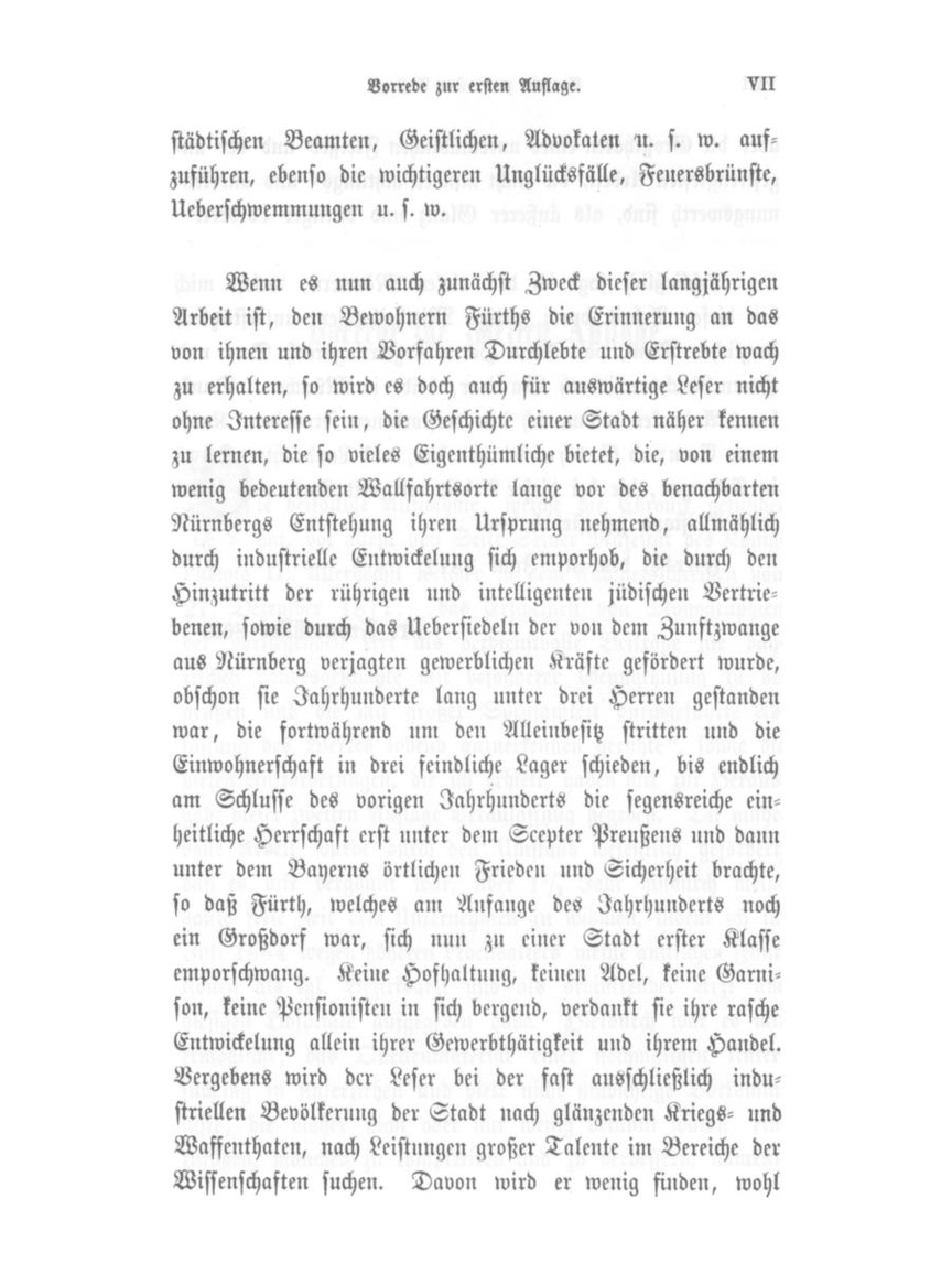 Schließlich sage ich den vielen Männern, welche mich bei dieser Arbeit durch gütige Mittheilungen unterstützten, herzlichen Dank, vor Allem Herrn Regierungsrath Sax und Herrn Reichsarchivrath Baader, beide in München. Dankbares Andenken widme ich den verstorbenen Freunden, Kaufmann Conrad Gebhardt von hier, und Landrichter Haas in Erlangen, die bei dieser Arbeit mir mit Rath und That stets Beistand geleistet haben.